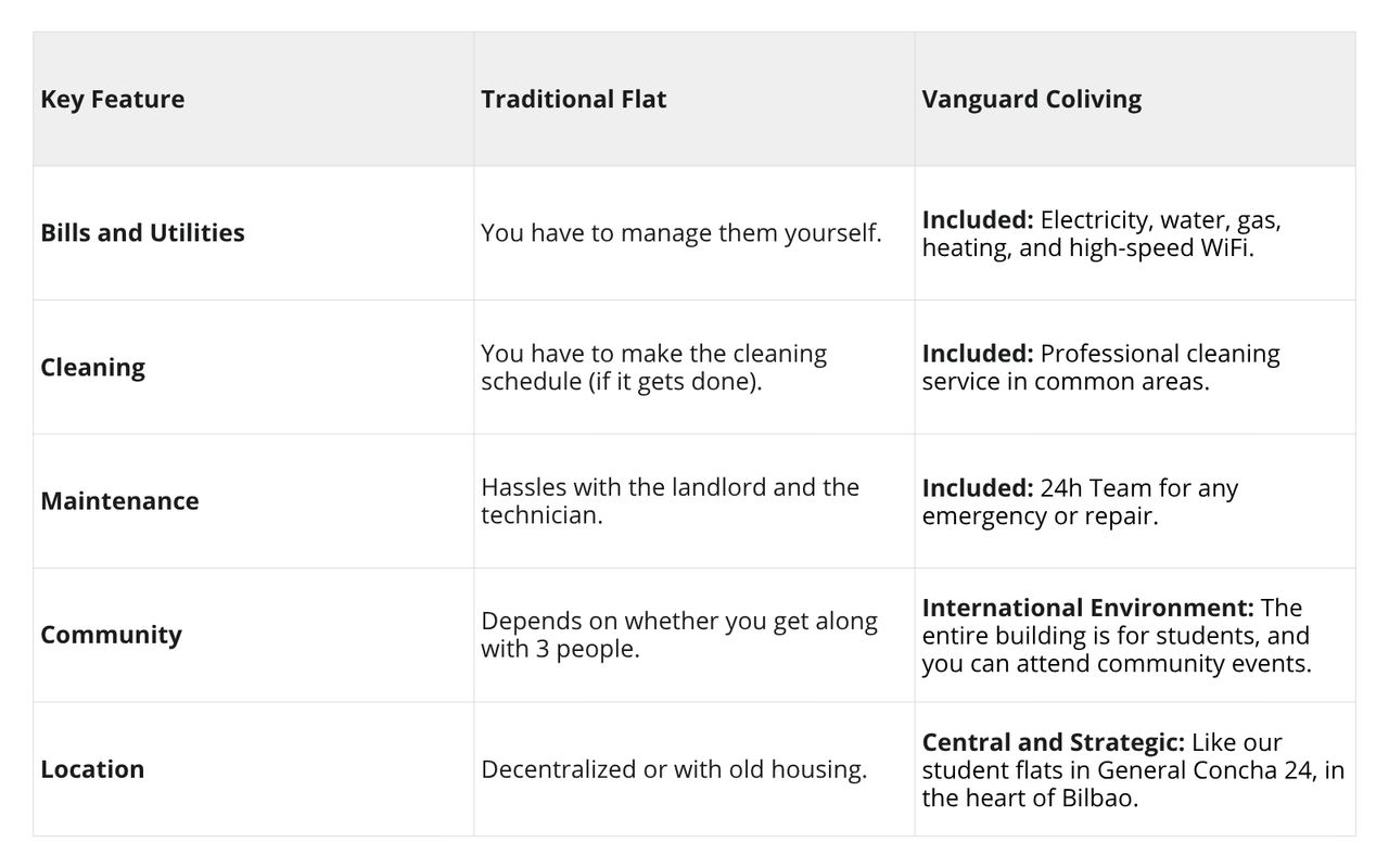 Tired of searching for student accommodation in Bilbao? Here’s what you WON'T deal with at Vanguard:
